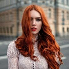 Od přírody se zářivě červená barva vyskytuje pouze u 2% lidí, ale tento tón je bohatý na svůj odstín odstínu - existuje velké množství odstínů světla a tmy, od zlatého karamelu po bohatý mahagonový tón. Existuje několik základních barev.