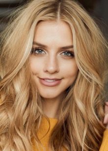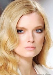Světle zlatá blondýna je nejjemnějším odstínem v tomto gamutu. Bezchybně se mísí se světlou pokožkou a modrýma očima. Kadeřníci však doporučují vyzkoušet tento tón a krásky s tmavýma očima. S pomocí zbarvení můžete dosáhnout světlého obrazu, nasyceného ženskostí a romantikou.
