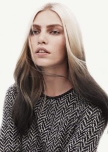 Hlavní důraz není v této verzi kladen na tipy pramenů, ale na rostoucí kořeny zdá se, že vlasy trochu rostly po tónování pruty nebo po brondingu. Pro takový gradient se obvykle používají tmavé a světlé tóny: oblasti v blízkosti kořenů jsou tmavé a kořeny jsou malovány světlejší.