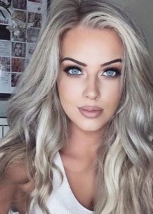 - Nejlehčí ze všech - odstín platiny, harmonický na bledých tvářích s nádechem zlata. Vypadá to obzvláště působivě v kombinaci s modrýma očima - to vám umožní vytvořit styl „Sněhové královny“, lákavý, tajemný a nepochybně sexy.