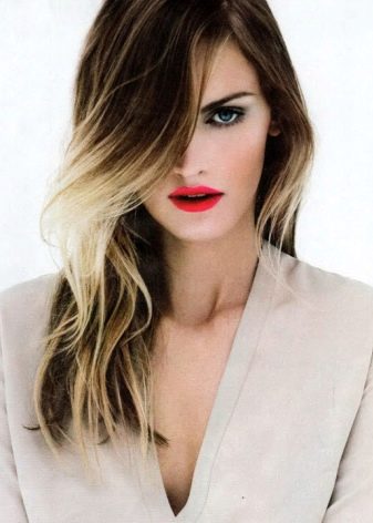 V tomto případě zapojte 1-2 tóny pro barvení, zatímco přechod mezi nimi může být rozmazán, nebo naopak jasný a ostrý - volba závisí pouze na osobních přáních dívky. Kořeny jsou zpravidla ponechány neporušené nebo trochu zesvětlené - je velmi důležité, aby vypadaly co nejpřirozenější. A tady tipy jsou zdobeny odstíny platiny nebo studené perly.