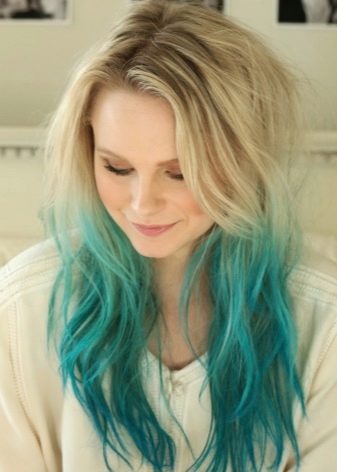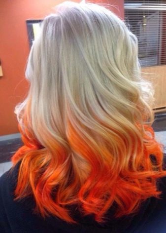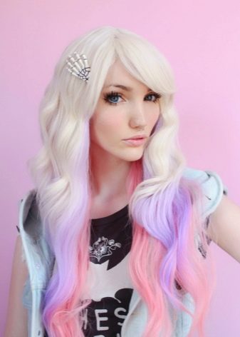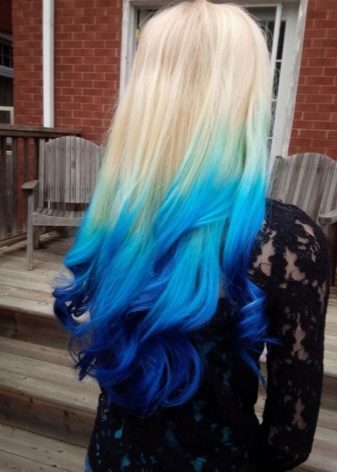 Toto zbarvení zahrnuje odvolání na neobvyklé barvy - gmodrá, lososová, růžová, fialová, fialová, jahodová nebo dokonce zelená. Barevný ombre na světlých pramenech se provádí jak na špičkách, tak v kořenové zóně.