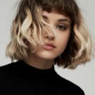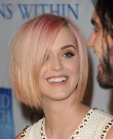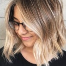 - Tónovaný v jahodových kořenech s hlavní blond na účesu bob.