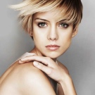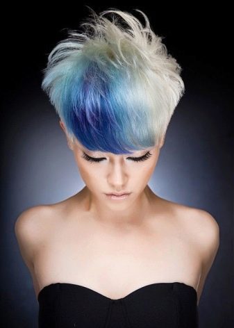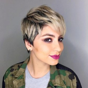 - Dvoubarevný ombre a zlomyslný styl na krátkých vlasech.