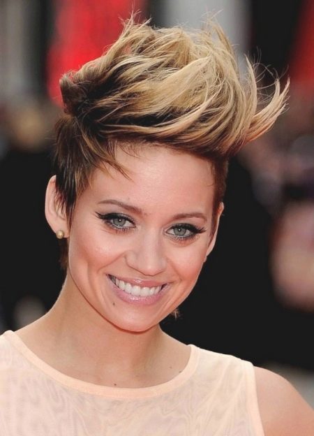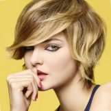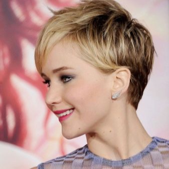 Pokud máte kulatý obličej, pak prameny v chrámech ovál vizuálně korigují a prodlužují. Ale je tu jedna námitka: musíte neustále udržovat účes návštěvou kadeřníka a stylingu. Klasické pixies - minimální délka na zadní straně hlavy a jakákoli v korunové zóně. Vlasy blízko obličeje jsou delší než zbytek vlasů. Bangs mohou být buď profilované, tak silné a rovné, stejně jako dlouhé a šikmé. A to je na rány, které lze použít techniku částečného ombre. Barevný vzor můžete umístit pouze na něj.