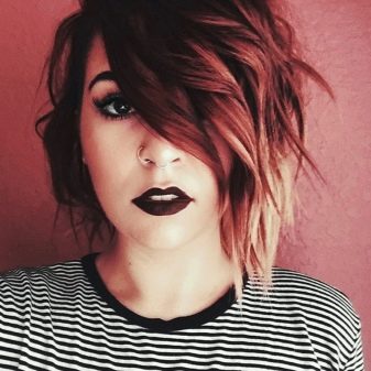 Ombre a zkratka jsou velkolepý duet. Ombre barvení vytváří potřebné akcenty, zdůrazňuje vrstvy a nesouměrnost ve složitých srážkách, vytváří vizuální objem a hustotu vlasů, v některých případech tak vylučuje potřebu stylingu.