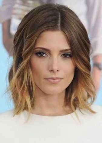 Klasická kaskáda je úžasná díky dvoubarevné ombre. Roztržená kaskáda může být zabarvena tvarovanou ombre. Asymetrická kombinace s částečným ombre. Okouzlující účes pro bob bude vypadat ještě elegantněji pomocí techniky ombre. Fazole, stejně jako kaskáda, má mnoho odrůd: fazole-bob, luštěniny, asymetrické fazole. Zajímavý fakt: výběr zpočátku sestřihu pixie s ombre, můžete krásně jít se stejným vzorem vlasů na bob. Dobře to ilustrují fotografie Ashley Simpsonové, která před stříháním bobu nosila skvrny.