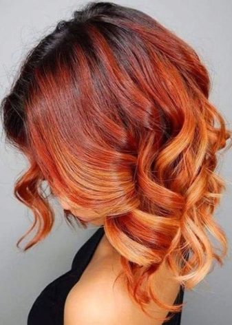 Technika Ombre se může jemně a elegantně spojit s přirozeným jasem rudých vlasů. S tmavě červenou barvou můžete tipy zesvětlit: jemná měď, zlato, přírodní a světle červené vlasy zbarvené na koncích do tmavších: hnědé, koňakové. Buď přejít z přírodních vlasů na umělé červené nebo odstín kořenů ve tmě, takže přirozenou barvu zůstane ve zbytku. Jedna námitka: v tomto případě bude nutné kořeny pravidelně tónovat.