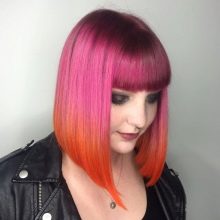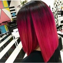 - červená, šedá, šedá a šedá, barva, červená, fialová a růžová ombre dokonale koexistují v tandemu s čtvercem na tmavém vlasy.