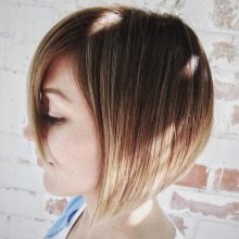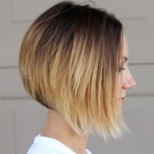 Tento střih se vztahuje na odstupňované pohledy s odstupňováním, prameny, jsou-li správně položeny, jsou svěží a silné. Ombre v této situaci může ještě zvýšit objem a eliminovat obtíže spojené s časem stráveným položením. Kořeny vypadají zvednuté, zvýrazněné tipy jsou sušší, což činí celkový dojem účesu velmi výrazným. To můžu říct bobcars a gradient barvy jsou vytvořeny pro sebe, zdůrazňují krásu a eleganci obou technik.