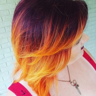 - Dvoubarevná kreativita. Ideální pro protažení a kreativní povahy. Špičky pramenů vypadají pálivě a chytlavě. K tomu se zpravidla vybírají následující barvy: med, červená, červená, oranžová, zlatá, měď.