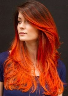 Ombre dává mnohem větší svobodu při výběru odstínů. Často je to v technikě ombre, kdy jsou jasně kontrastní účesy vyráběny s takovými barvami, jako je ohnivá červená, zelená, fialová a další. Takové skvrny vypadají mnohem zajímavěji než běžné barvení v jedné barvě. Populární jsou také přírodní skvrny ombre. Barva u kořenů může být udržována přirozená a může se měnit během procesu barvení, to znamená, že k barvení dochází po celé délce vlasů ve dvou nebo více barvách.