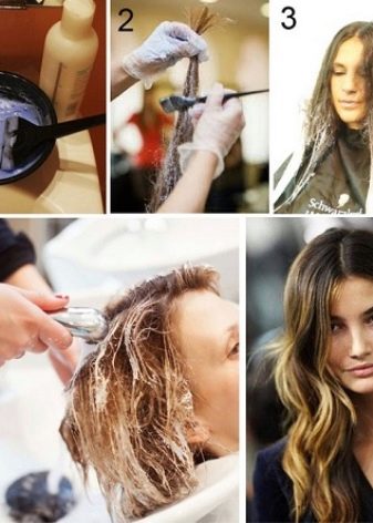 Ombre zbarvení se provádí od středu pramenů ke koncům. Pro udržení hranice přechodu je nutné, aby barva prošla na stejné úrovni, takže bude elegantní. Tato hranice může být co nejvíce zastíněna, ale může být ponechána ostrá a vysoce patrná - každá z možností je přijatelná. Doba expozice barvení vlasů závisí na základní barvě vlasů a na konečném výsledku. Po zesvětlení jsou vlasy zbarveny barvou. Pro barvení ombre folie se také nepoužívá. Kartáč se však používá v obvyklém režimu: barva se nanáší na celou pracovní plochu kartáče.