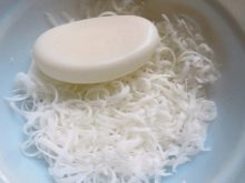 - nastrouhejte strouhané mýdlo vroucí vodou a dobře promíchejte, dokud nevznikne homogenní hmota;