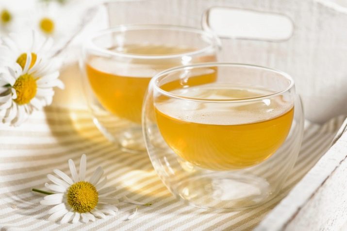 - heřmánkový květenství je třeba umístit do nádoby a nalít vroucí vodou; nechte vyluhovat po dobu 30 minut a napětí;