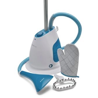 - Parní generátor lze také použít ve svislé poloze. To je výhodné při čištění záclon. Ale pak byste si měli vybrat zařízení s dlouhou hadicí.