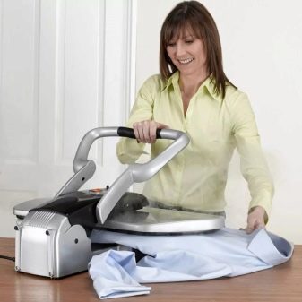Výhodou zařízení je velká vodní nádrž. Při žehlení velkých objemů nebude nutné neustále přidávat vodu. Nevýhodou je nízká pohyblivost zařízení a potřeba přidělit další prostor (stojan) pro nádrž. No a samozřejmě se nemůžete obejít bez žehlicí prkna.