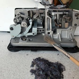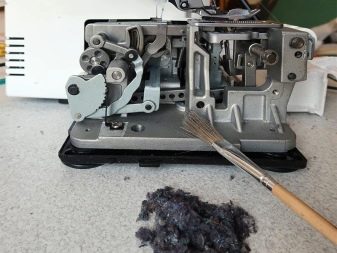 - očistěte overlock měkkým suchým hadříkem a v případě přetrvávajících nečistot jemně otřete oblast hadříkem navlhčeným v alkoholu nebo parafínu (při čištění stroje nepoužívejte benzín ani jiné chemické čisticí prostředky).