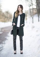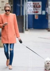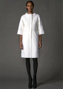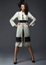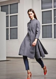 Kabát vypadá harmonicky s šaty, sukněmi. V tomto řezu je lepší zvolit rovný nebo mírně rozšířený. Co se týče délky, měl by kabát zcela pokrývat lem produktu.