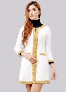 Jak řekl velký Coco: kabát by měl plnit dvě hlavní funkce: učinit dámu elegantním a poskytnout útěchu. Existuje mnoho modelů kabátů ve stylu chanelu, ale jsou spojeny jednou věcí: barevným schématem. Jsou to šité hlavně v neutrálních odstínech: bílá, šedá, černá a béžová.