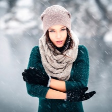 - Zimní pletené rukavice jsou velmi teplé a pohodlné. Takové modely vypadají dobře ve sportovních obrazech. Pro pletené rukavice se doporučuje vybrat si klobouk a šátek stejné barvy, mnoho výrobců vytváří hotové sady sestávající z těchto tří doplňků.