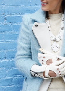 - Rukavice jasných barev musí odpovídat tónu ostatních doplňků. Například modré nebo červené rukavice lze kombinovat s kabelkou nebo kloboukem. V takovém případě bude jas příslušenství porazen a harmonicky zapadne do obrazu.