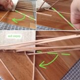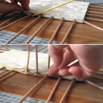 Podstavce stojanů se staví současně nasazením novinových trubek upevněných lepidlem PVA. Je důležité, aby všechny klouby byly buď uvnitř, nebo na těch nenápadných místech. Pro vytvoření úhledné hrany jsou stojany za sebou navinuty a poté jsou ohnuty. Připravené "paprsky" jsou pleteny metodou lana. Na konci práce musí být konce „vinné révy“ a stojanů maskovány pomocí paprsku vedoucího dolů.