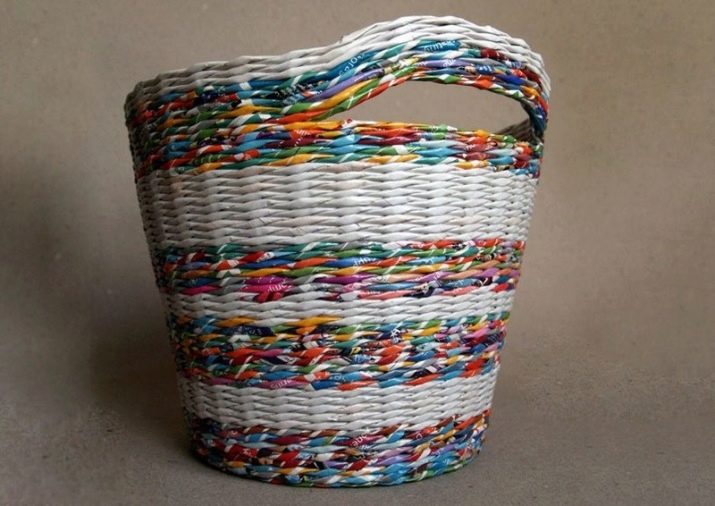 Akrylový lak pro novinové trubky bez nepříjemného zápachu poskytne produktu atraktivní lesk, ale také poskytne další ochranu před nečistotami a vlhkostí. V případě, že trubice nebyly před začátkem práce potaženy barvou, mohou být barvy přidány do hotového výrobku také použitím tematického vzoru na povrch, například metodou decoupage. Koše vybavené vnitřním textilním potahem nebo zdobené textilními vložkami, copem, krajkou nebo luky vypadají velmi pěkně.. Můžete vydat, jakmile zdi, a spodní s víkem.