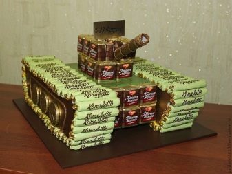Pokud jsou mezi dělníky skuteční řemeslníci, můžete si vyrobit originální suvenýr, například, tank, letadlo nebo loď z čokolády. Takový dárek bude pro kuchaře příjemný, pokud miluje sladkosti a nemá žádné kontraindikace k použití čokolády. Tým může nezávisle uspořádat skutečnou hostinu na počest dovolené.