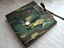 Obal na dokumenty ve vojenském stylu. Skvělé řešení, pokud osoba nemá na pasu ochranný obal. Různé vzory vám umožní vybrat si dobrou obálku, a to i se jménem muže. Vojenský design vždy vypadá solidně.
