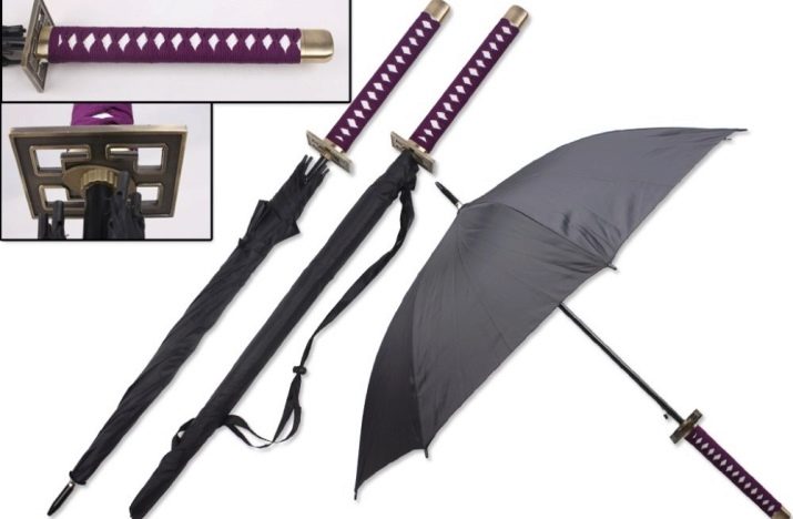 - Deštník Pro mnohé se to může zdát příliš triviální a jednoduché. Výjimkou jsou modely, ve kterých je rukojeť vyrobena ve formě velkolepého samurajského meče nebo zbraně. Tyto originální designové možnosti přitahují pozornost a přitahují lidi.
