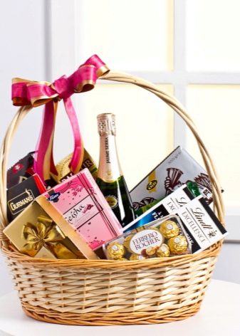 Pokud chcete vytvořit více individuální a osobní dárek, budete muset vynaložit malé úsilí a představivost. Nejprve musíte připravit vhodný kontejner - koš nebo krabici. Košík by měl být zakoupen a prázdninový box lze vyrobit samostatně pomocí balicího papíru nebo fólie.