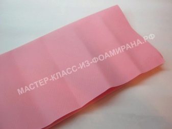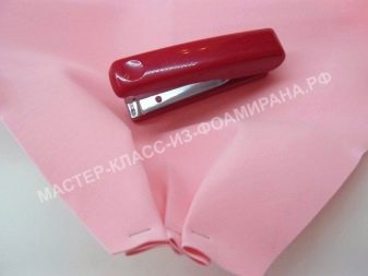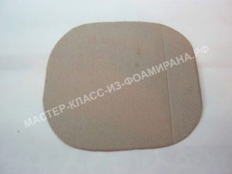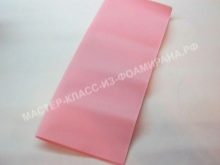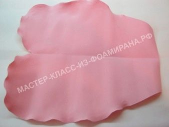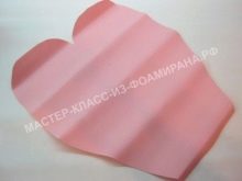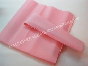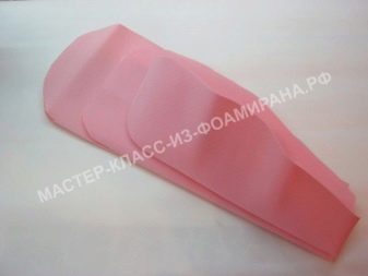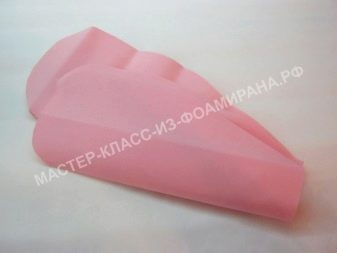 Nejprve se standardní růžově zbarvená pěnová vrstva složí dvakrát na polovinu a rozřeže se na 4 čtverce. Je nutné, aby strany výsledných polotovarů byly rovny 30 a 35 centimetrů. Celkem je potřeba 6 takových čtverců, a proto budou muset být další 2 vyříznuty z jiného listu.