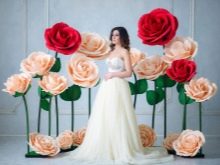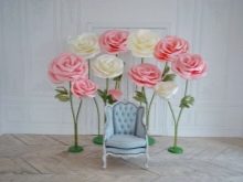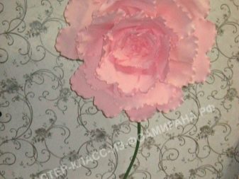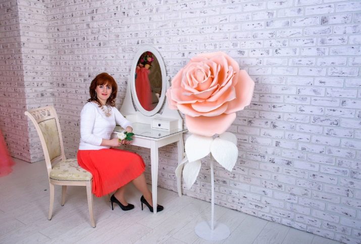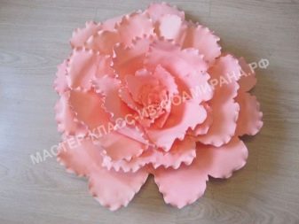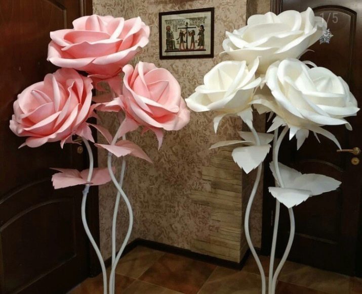Pro výzdobu interiérů se často používají velké růstové květiny. Navzdory skutečnosti, že je můžete dokonce vyrobit z obyčejného papíru, bude mnohem správnější použít pěnový polyuretan - plastovou pěnovou gumu, která se podobá tenké semišové struktuře.