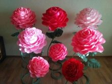 Mistrovská třída výroby velkých růží z pěnového polyuretanu ve videu níže.