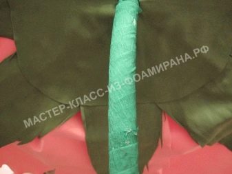 Chcete-li vytvořit květ, potřebujete 0,5 standardní list pěnové zelené a 4 listy růžové. Vřeteno je vytvořeno na základě třímetrové kovové plastové trubky, jakož i 6-7 novinových nebo kartonových trubek.