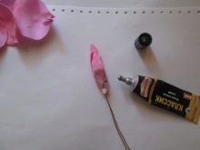- Řetězec růžové okvětní lístky na drátu. Vytvořte díru ve středu kruhu navlhčenou lepidlem.