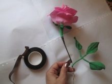 Každý stonek zabalte do lepicí pásky zelenou barvou a na květiny připevněte listoví.