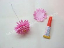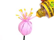 - Opatrně položte okvětní lístky na hotovou tyčinku, dobře ji přilepte lepidlem.