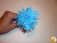 - Nyní můžete sbírat květinu. Kolem tyčinek nejprve připojte 3 okvětní lístky a zbylé 3 by měly být přilepeny poblíž, podle vzoru šachovnice.