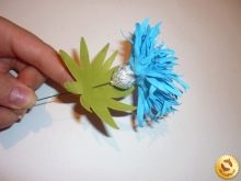 - Řezané listy ze zeleného pěny, připojte je ke stonku.
