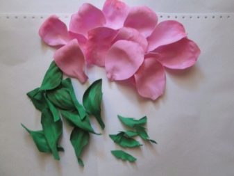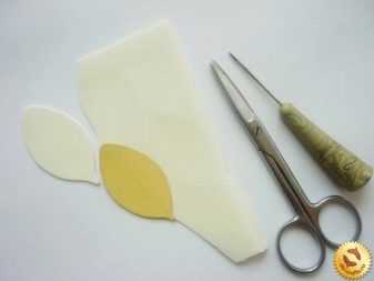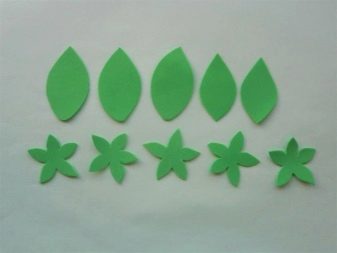 - Nejprve vystřihněte okvětní lístky a listy listu budoucího plavidla z pěnového polyuretanu. Pokud je to nutné, musí být obrobek předem naladěn.