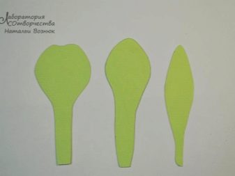 - Nejprve by měl být na kartonovém listu zobrazen okvětní lístek tulipánu, jehož výška je 6 cm a šířka 3,5 cm uprostřed. Výsledný vzor pečlivě ořízněte.