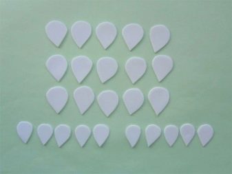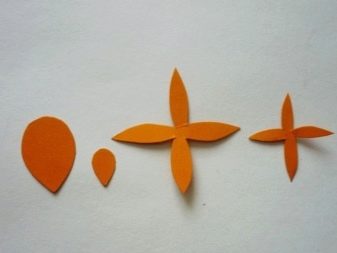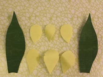 - Nakreslete na papírový list okvětní lístky o rozměrech 2,5x2 a 1,5x1,2 cm a také 2 sepaly. Celkem bude zapotřebí 15 velkých a 6 malých polotovarů.