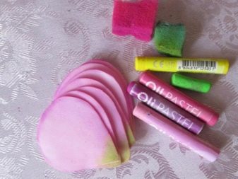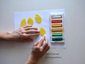 - Opatrně odstínujte lístky v listu budoucí květiny.Použijte mokrý ručník se suchým pastelem.