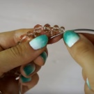 Třetí prvek by měl již sestávat z 9 kuliček, protože drát fixujeme v předchozí části, drát zavedeme do základny předchozího prvku a „vypůjčíme“ z něj dvě kuličky. Další části na jedné straně se budou zmenšovat, dokud nezůstanou 2 kuličky. Nakonec zafixujeme a zavedeme nový drát do druhého prvku, vše na druhé straně zrcadlíme, počínaje množstvím korálků druhého prvku. Pro vytvoření svazku vnášíme do první části nový kousek drátu, 3 korálky ze základny, provázek 12 korálků. Na druhou stranu opakujeme totéž. Ukázalo se, že takový diadém je velmi účinný, zejména pokud jste použili korálky rondel a efektně se třpytí ve světle.