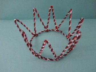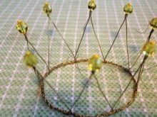 Podobným způsobem si můžete udělat korunu z ženilkového drátu, pak to bude vypadat ještě působivěji, ale dopadne mnohem levněji. V tomto případě nebudete potřebovat tolik korálků, protože samotný drát je velmi krásný. Namísto připevnění korunky k ráfku můžete použít starý vlásenka, když jste předtím odřízli kruh z lepenky stejného průměru jako samotná korunka. A pak připojte vlásenka na jednu stranu tohoto kruhu a korunu na druhou.