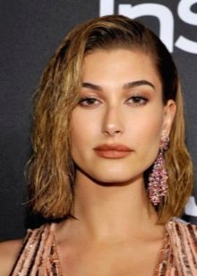 Vzhledem k tomu, že účes je variabilní, můžete si vybrat styling stylu pro jakýkoli tvar obličeje. V tomto případě bude hrát roli umístění části, objem vlasů, závažnost efektu, přímá nebo zvlněná struktura.