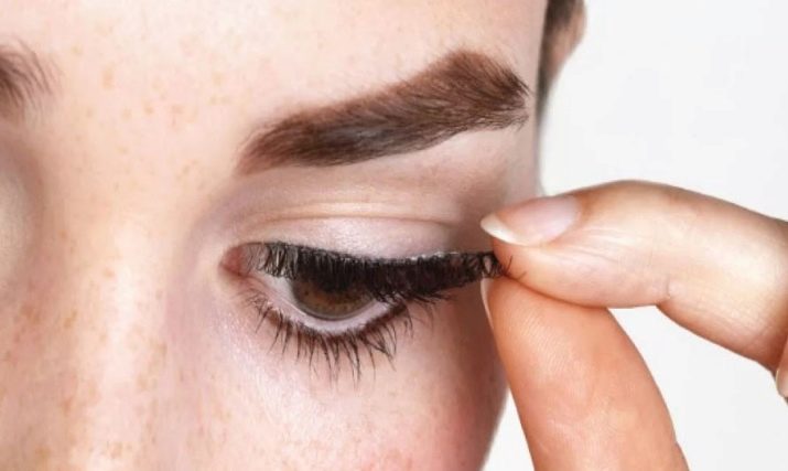 - Můžete použít dekorativní kosmetiku, například řasenku, ale pouze před upevněním pásky umělým chloupkem.