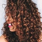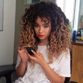 Zbarvení kudrnatých vlasů vždy vypadá docela zajímavě. Tohoto efektu je dosaženo odlišným uspořádáním každého pramene vlasů. Z tohoto důvodu můžete jasně vidět postupně se zvyšující tóny a barevné přechody. A také kyvadlová doprava na kudrnaté vlasy se provádí rychleji než na rovných. Důvodem je skutečnost, že kudrnaté vlasy mají větší počet pórů, a proto se barvicí pigment absorbuje do vlasů rychleji.